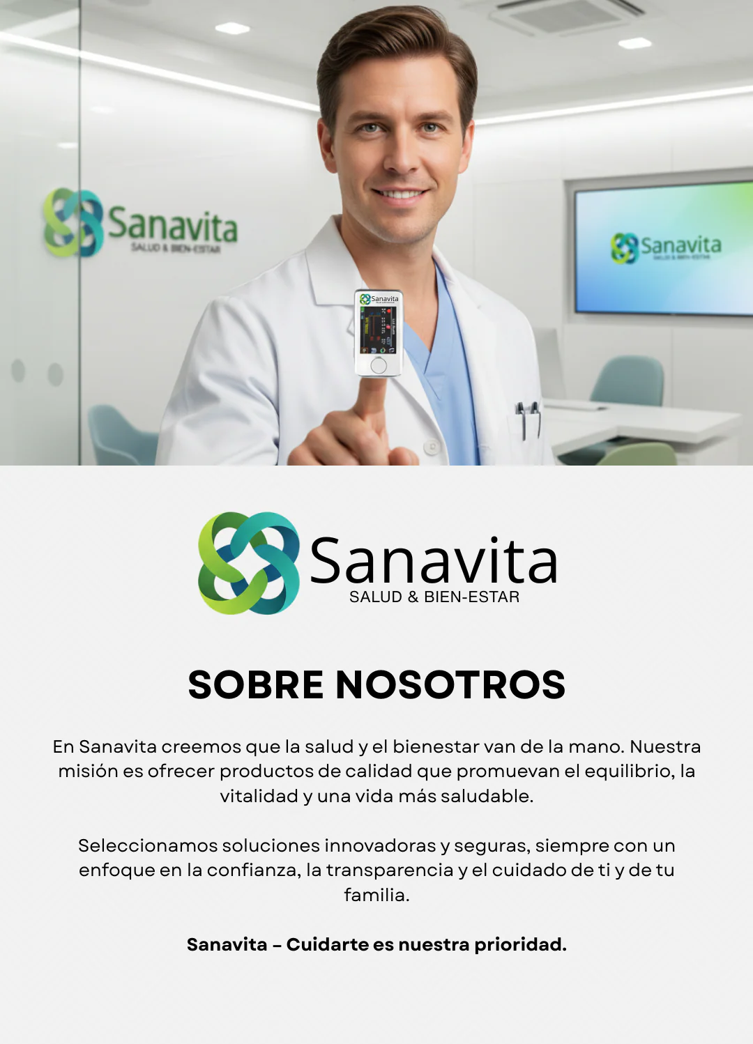 El Sanavita™ combina tecnología médica avanzada con total comodidad. Su precisión del 99,9% asegura resultados confiables, ofreciéndote control y tranquilidad para cuidar tu salud en cualquier momento.